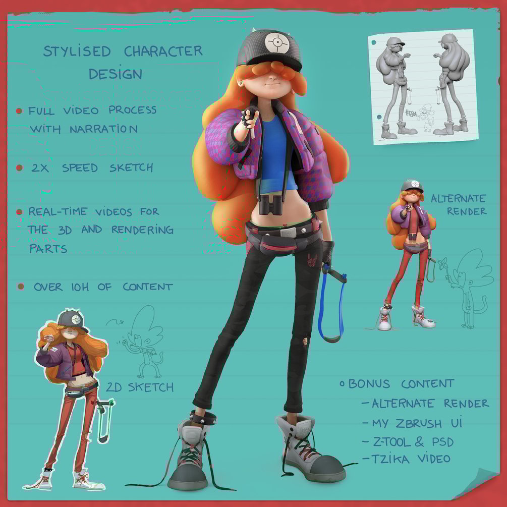 I use Zbrush and Photoshop to create this character. Its recorded in realtime with commentary and it covers a variety of techniques that you can apply to your own projects.